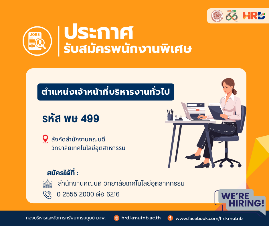 รับสมัครพนักงานพิเศษ ตำแหน่งเจ้าหน้าที่บริหารงานทั่วไป รหัส พษ 499 สังกัดสำนักงานคณบดี วิทยาลัยเทคโนโลยีอุตสาหกรรมBy HRD KMUTNB / 22/12/2025 View FullscreenSkip to PDF content
